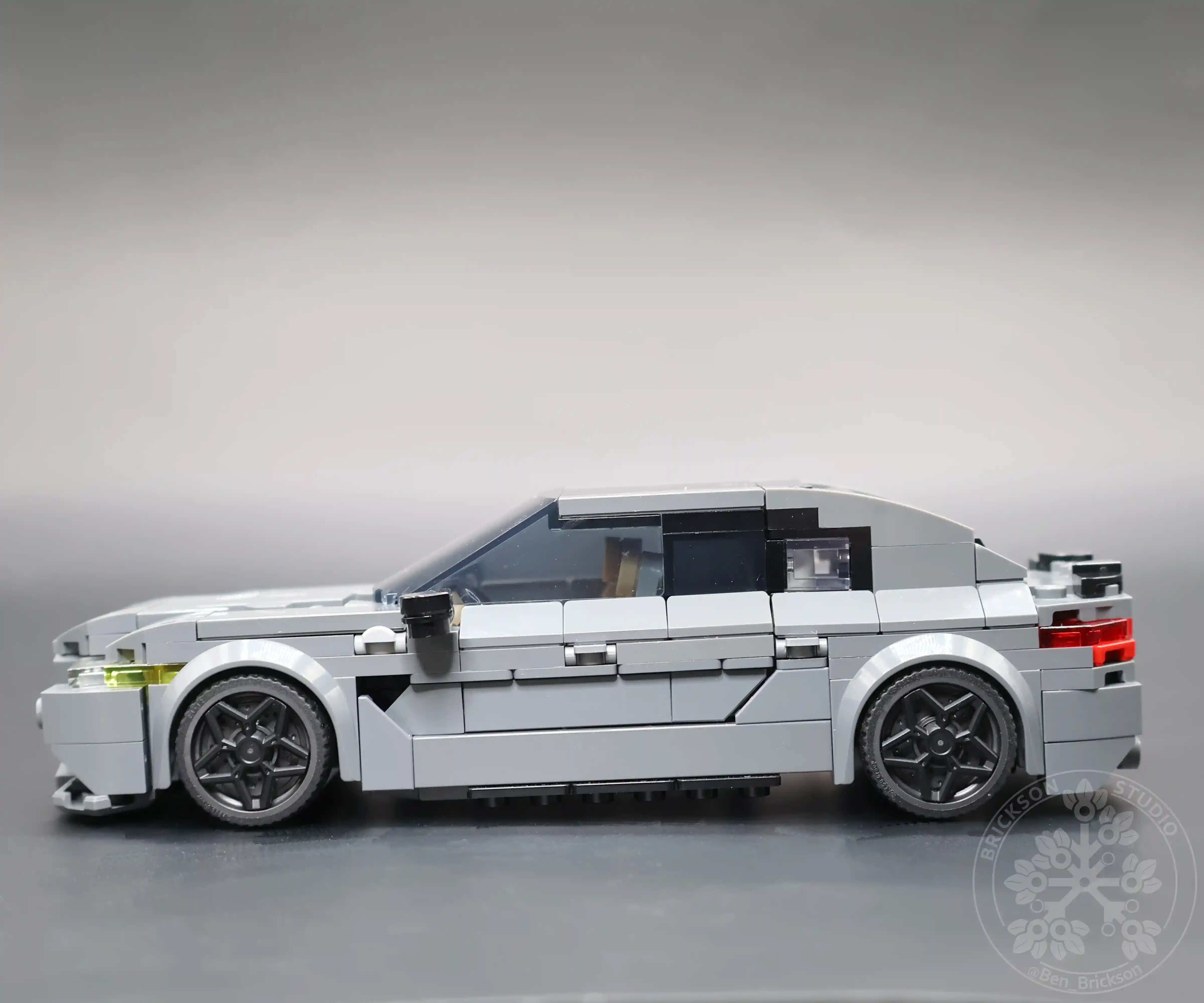 A specific ask for this commission was to focus on the subtle curves and shaping within this Alfa Romeo. At first glance the body is a simple sedan, yet upon closer inspection, the subtle arcs, carbon fiber details, and elegant yet intricate shaping begin to stand out. To capture the subtle side panelling of the vehicle, a series of brackets are used to inset an angled line by the width of half of a plate.